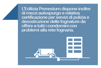 Edilizia Prenestum dispone di mezzi autospurgo con relativa certificazione per servizi di pulizia e desostruzione delle fognature.