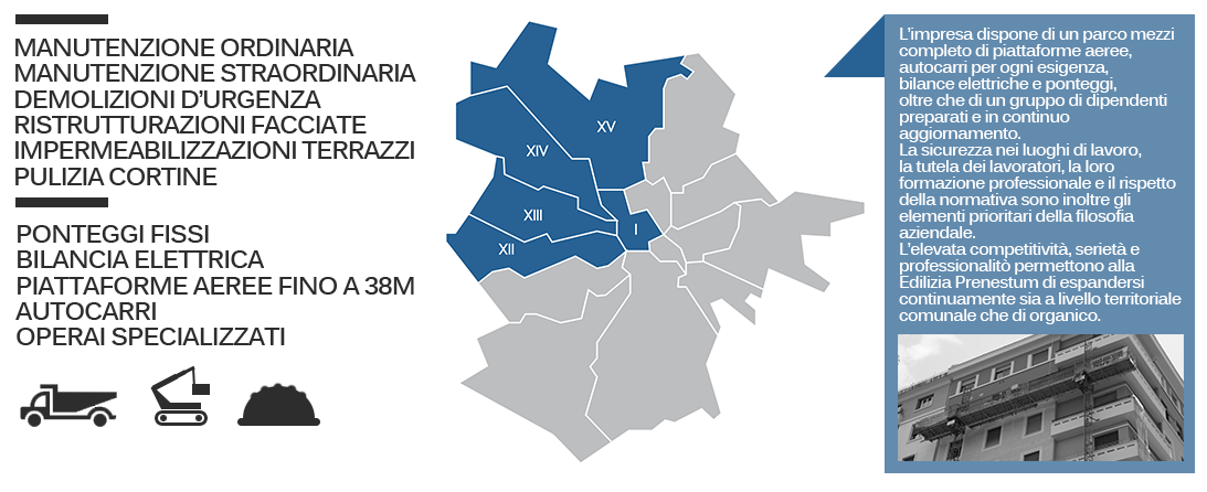 Edilizia Prenestum è un' impresa in continua evoluzione con un parco mezzi completo e ponteggi fissi e mobili di proprietà.